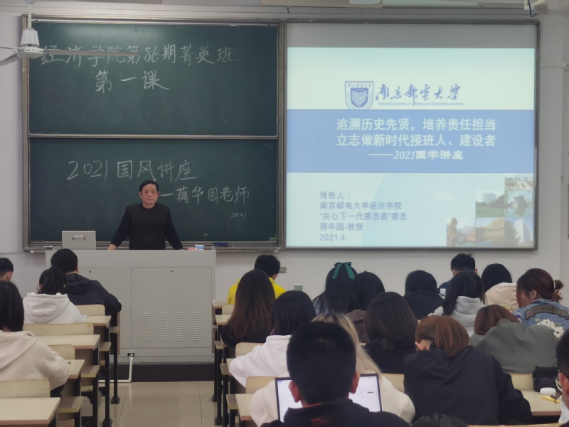 2021年4月7日下午,mg4355vip检测中心第八十六期大学生菁英人才学校暨mg4355vip检测中心学生骨干培训班第一课在教2-204顺利举行。本次课程主讲人为校关工委委员蒋华园教授,围绕《追溯历史先贤,培养责任担当,立志做新时代接班人、建设者》这一主题展开授课。