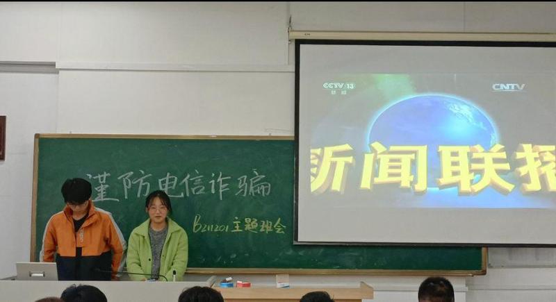 首先,班主任杜运伟老师针对电信网络诈骗事件进行了深刻的分析,并运用了实际生活中的案例来生动阐释相关事件,点明了本次班会的主题。借此班会的机会,杜运伟班主任也分享了他对大学的看法,对一班的同学们表示了对未来的殷切期待。随后,孙俞馨和赵阳两位同学进行了主旨演讲和主题报告会,通过新闻联播的形式,以三个由曹佳起同学饰演的有关电信网络诈骗的短视频为引子,引出电信网络诈骗的危害,幽默风趣的形式激起了同学们的兴趣。最后,通过有关电信网络诈骗的“沉浸式体验”互动,增强了大家的防范意识。