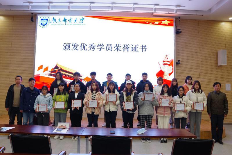 最后董书记、王老师、尤老师为22名优秀学员颁发优秀学员证书并集体合影。