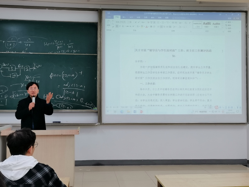为促进mg4355vip官网辅导员、班主任队伍建设,发扬良好学风、院风,mg4355vip检测中心2020级于12月24日上午9:00在教3-309开展辅导员面对面测评暨学期总结大会,mg4355vip检测中心党委副书记兼副院长董军老师出席、2020级全体本科生参加。会议由2020级辅导员杜雯馨老师主持。