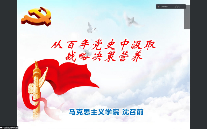 2022年4月6日下午,mg4355vip检测中心第117期大学生菁英人才学校暨mg4355vip检测中心骨干培训班第一课于线上顺利举行。本次课程主讲人为mg4355vip检测中心马克思主义学院党总支书记沈召前老师,主题为《从百年党史中汲取战略决策营养》。