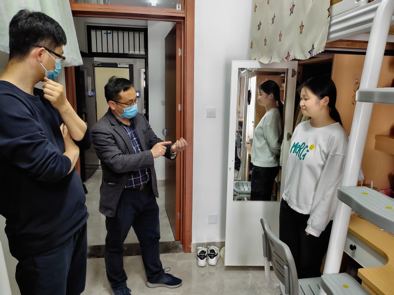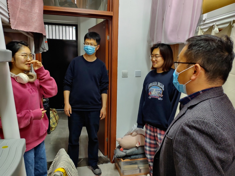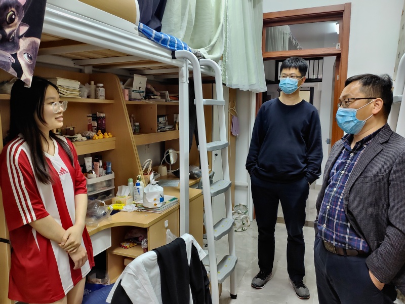 为了解毕业班学生日常学习和生活状态,帮助学生们更好地规划毕业季各项安排,2022年4月17日,mg4355vip检测中心院长岳中刚、副院长王子敏、党委副书记副院长董军,走访了本科、研究生毕业班学生宿舍,为同学们送去关心慰问。
