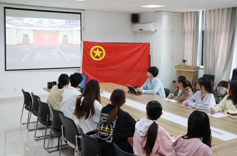 2022年5月10日上午,庆祝中国共产主义青年团成立100周年大会在北京人民大会堂隆重举行,mg4355vip检测中心各团支部、学生会、分团委秘书处、学生社团准时观看本次大会直播。mg4355vip检测中心分团委书记尤波老师带领各学生组织主席团成员、受校“两红两优”表彰学生代表在文科楼529会议室进行集中观看学习。会议室内悬挂团旗,各学生代表佩戴好团徽,全程认真观看并做好了学习记录。