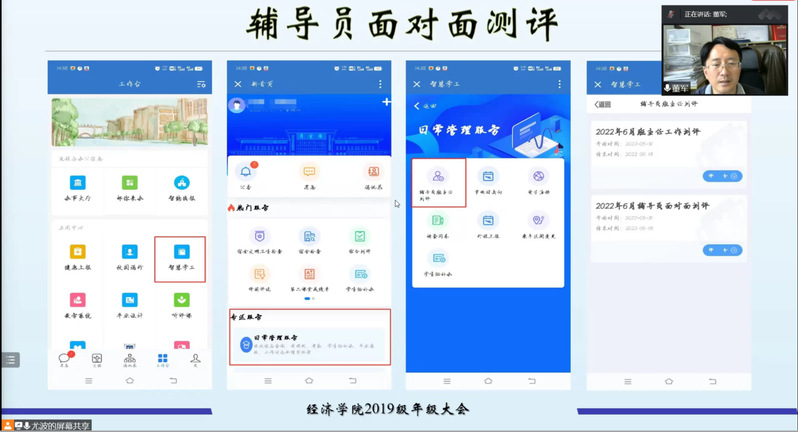 年级大会上,董军老师首先主持进行了2021-2022年度辅导员测评工作,并就假期事宜做出了相应的安排。