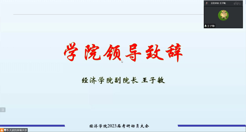 会上,岳中刚院长对云端考研自习室活动进行了全面的介绍,并从复习规划、时间利用、效率保证等几方面做了要求,希望大家能够“充分利用好时间,做到早起签到学习、晚上按时休息”,表示“学院将倾尽全力服务好帮助好考研同学”,并对学院2023届考研学子寄予美好祝福。