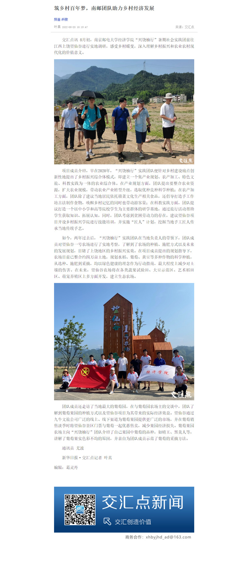 【交点汇新闻】筑乡村百年梦,南邮团队助力乡村经济发展
