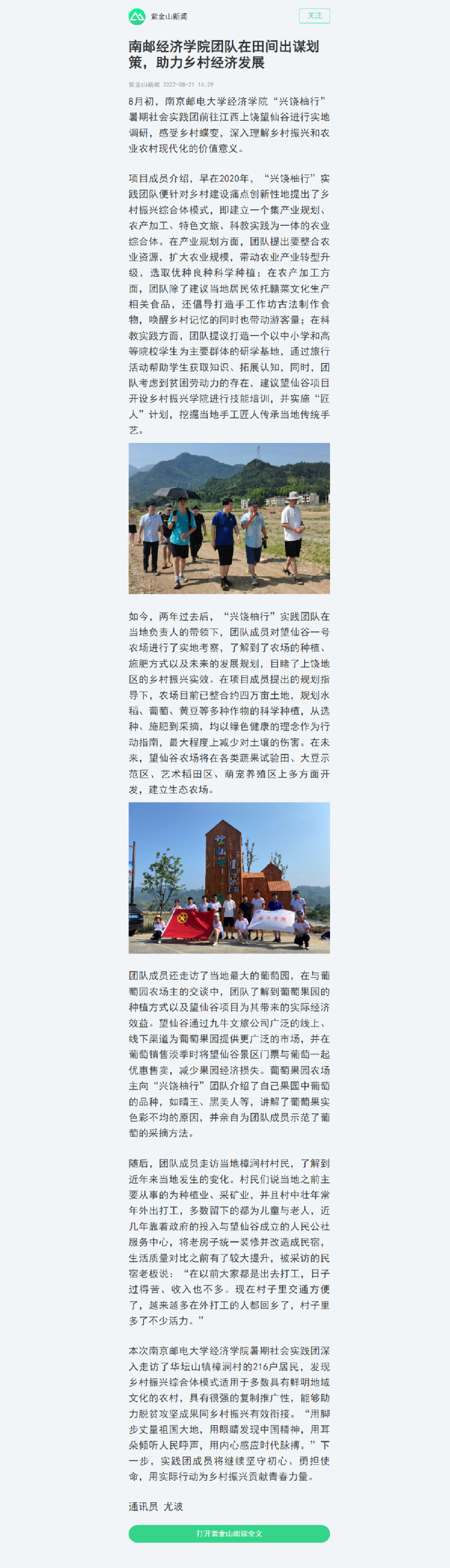 【紫金山新闻】南邮mg4355vip检测中心团队在田间出谋划策,助力乡村经济发展