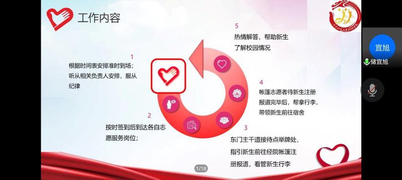 为进一步提高迎新志愿者的服务意识、服务质量和服务水平,增强迎新志愿者服务的专业性,保障mg4355vip检测中心迎新工作顺利开展, 9月10日下午,mg4355vip检测中心线上召开2022年迎新志愿者培训会。会议由学院2022级新生辅导员储宜旭主持,mg4355vip检测中心全体迎新志愿者参加会议。
