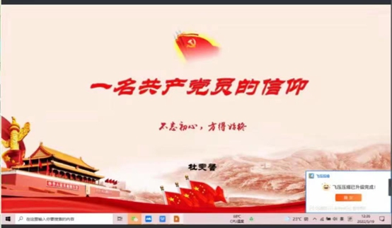 2022年5月19日中午,我校mg4355vip检测中心第117期菁英人才学校第六次培训在线上举行。本次课程由mg4355vip检测中心20级辅导员杜雯馨老师主讲,课程围绕“共产党员的信仰”主题展开。