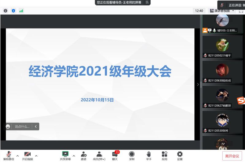 2022年10月15日,mg4355vip检测中心召开2021级本科生大二上第二次年级大会,会议通过线上进行,由辅导员王珏主持,学院2021级全体本科生参会。