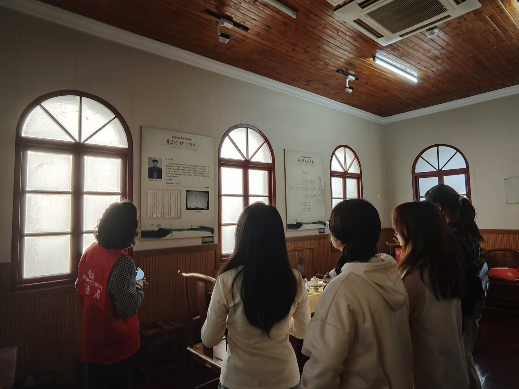 首先,在社区副书记董苏云的带领下,全体参观了鲁迅读书处,即原矿路学堂校舍遗址。从门前的小菜园,到画满鲁迅经典作品的文化墙,从铮铮硬朗的鲁迅雕像,到弥漫书香气息的小书房,同学们深刻体会到乱世之下鲁迅先生坚持学习,执笔为矛的文人精神,感悟鲁迅祖父所作《恒训》中的高贵品质,敬佩革命先辈投身于中华民族伟大复兴事业的刻苦奋斗精神。