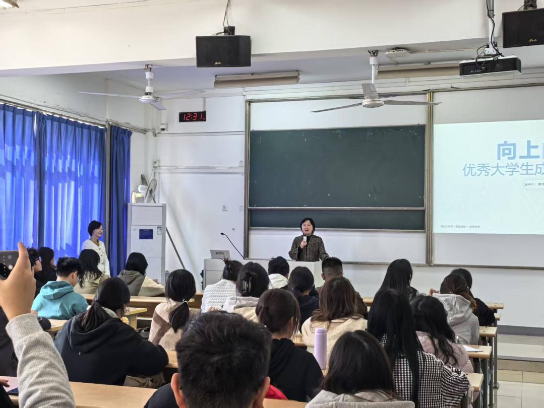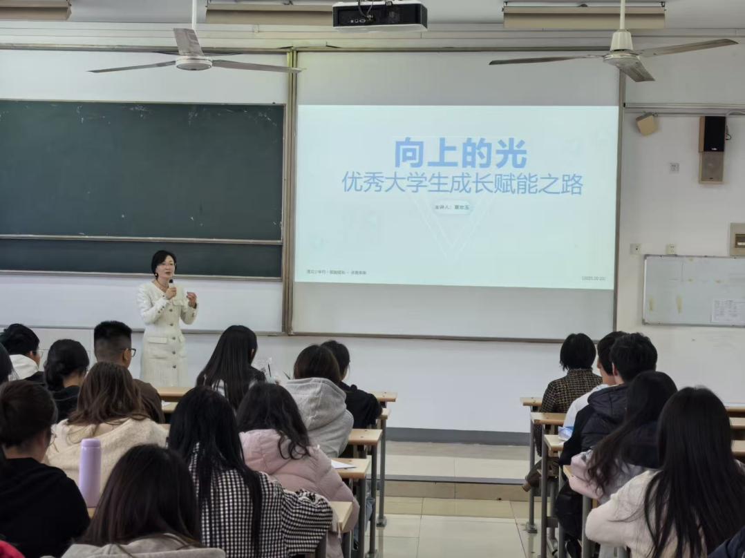 2025年10月22日下午,mg4355vip检测中心第二百一十八期菁英人才学校暨mg4355vip检测中心学生骨干培训班第六次课程于仙林校区教3-204顺利举行。本次课程由夏宏玉老师主讲,主题为《向上的光,优秀大学生成长赋能之路》。学院党委副书记、副院长吴迪老师以及菁英班全体学员和学院学生骨干共同参与学习。