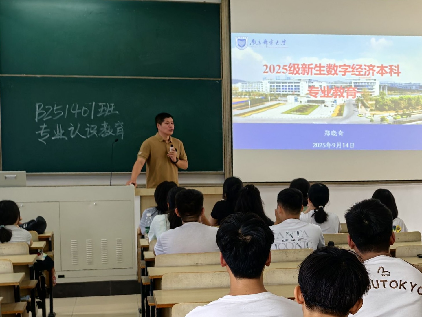 风华正茂,扬帆起航。mg4355vip检测中心mg4355vip检测中心迎来了朝气蓬勃的2025级新同学。为帮助新生深入了解专业内涵,科学规划学业发展,学院于9月14日下午14时分别在教2-403,教2-404,教2-405组织开展了新生专业认知教育活动。经济系郑晓奇老师、经济统计系易莹莹老师、金融系程铁军老师担任主讲人,2025级全体新生分专业参与此次活动。