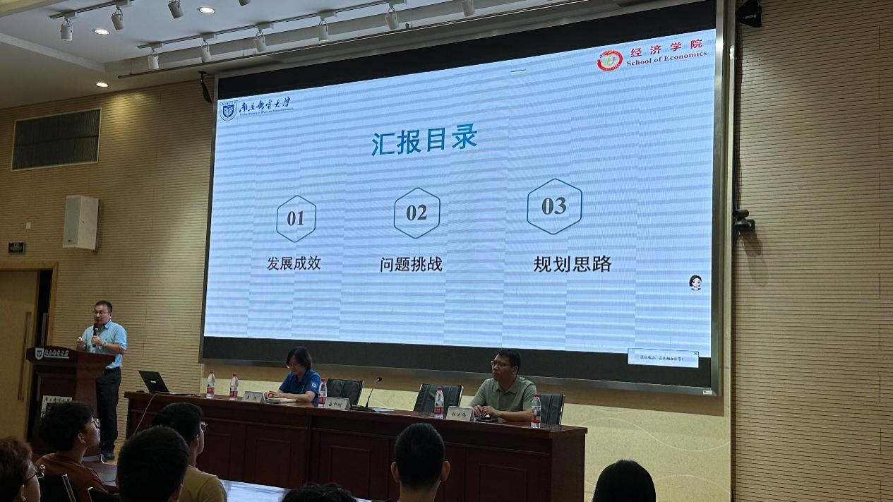 岳院长从学院历史渊源切入,细致回顾了经济学科自1983年创立以来的发展脉络。他特别强调,2013年mg4355vip检测中心独立建院是学科发展的关键里程碑——依托mg4355vip检测中心深厚的电子信息学科底蕴,学院在此后逐步探索并形成了独具特色的“信息文科”发展路径。岳院长进一步指出,学院发展的核心优势在于“经济学与信息技术的深度融合”:凭借这一特色,学院在数字经济、大数据统计、数字金融等前沿领域形成了显著竞争力,相关研究与人才培养成果也得到行业广泛认可。谈及学院未来发展,岳院长表示,学院将始终坚守“经世济民,信达天下”的院训,持续深化新文科建设,进一步加强学科交叉融合力度,着力培养“既懂经济学理论、又掌握信息技术工具”的复合型人才。