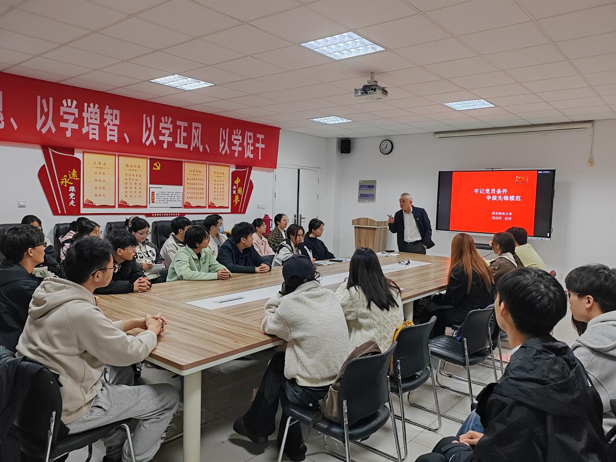 2025年11月7日中午,mg4355vip检测中心关工委副主任、mg4355vip检测中心关工委副主任储成祥教授在仙林校区文科楼529会议室为mg4355vip检测中心第580期暨mg4355vip检测中心第21期入党积极分子党校培训班学员讲授了题为"牢记党员条件,争做先锋模范"的专题党课,38名入党积极分子党校培训班学员参加。
