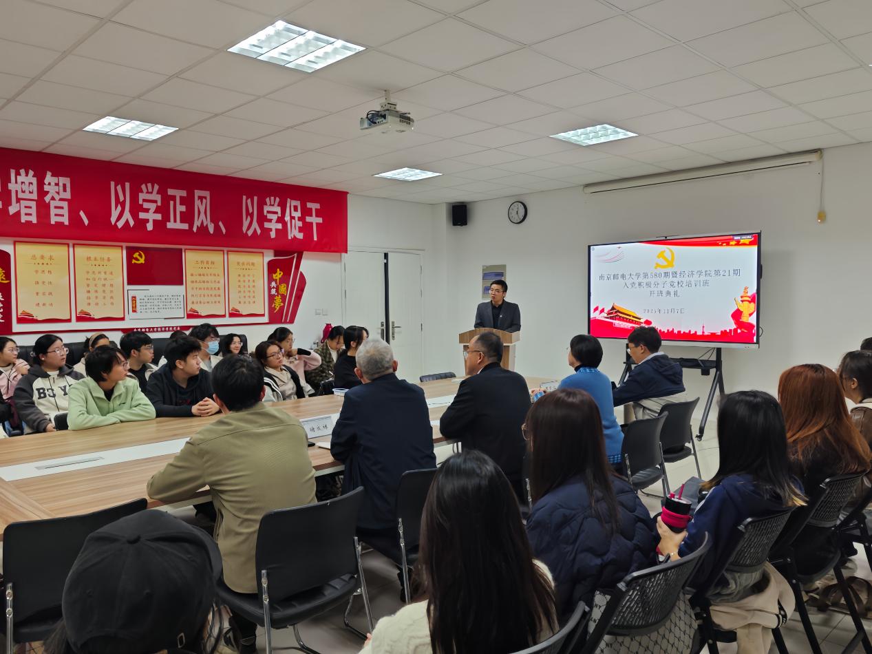 2025年11月7日中午,mg4355vip检测中心党委在仙林校区文科楼529会议室举行mg4355vip检测中心第580期暨mg4355vip检测中心第21期入党积极分子党校培训班开班典礼。mg4355vip检测中心党委书记刘挺老师,校、院两级关工委副主任储成祥教授,学院党委副书记、副院长吴迪老师,学院分团委书记、学生第一党支部书记尤波老师,学生第四党支部书记周洪山老师出席了本次开班典礼,培训班全体38名学员参加。开班典礼由学院组织员黄海生老师主持。