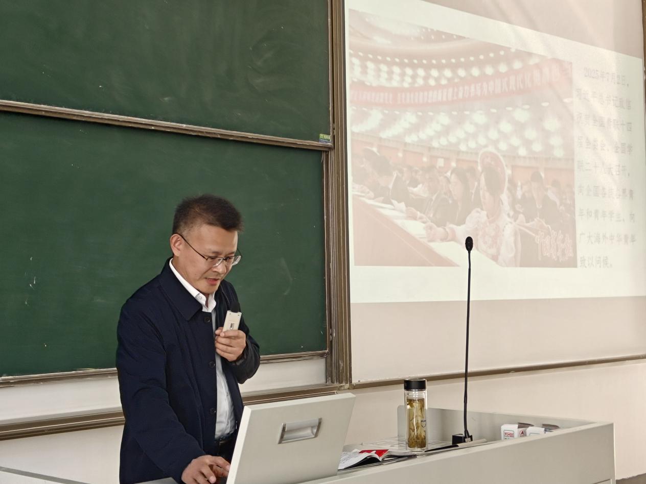 2025年11月12日,mg4355vip检测中心思政课导师、马克思主义学院张可辉副教授在仙林校区教2-303教室为mg4355vip检测中心第580期暨mg4355vip检测中心第21期入党积极分子党校培训班学员讲授主题为“奋力书写为中国式现代化挺膺担当的青年篇章”的专题党课。
