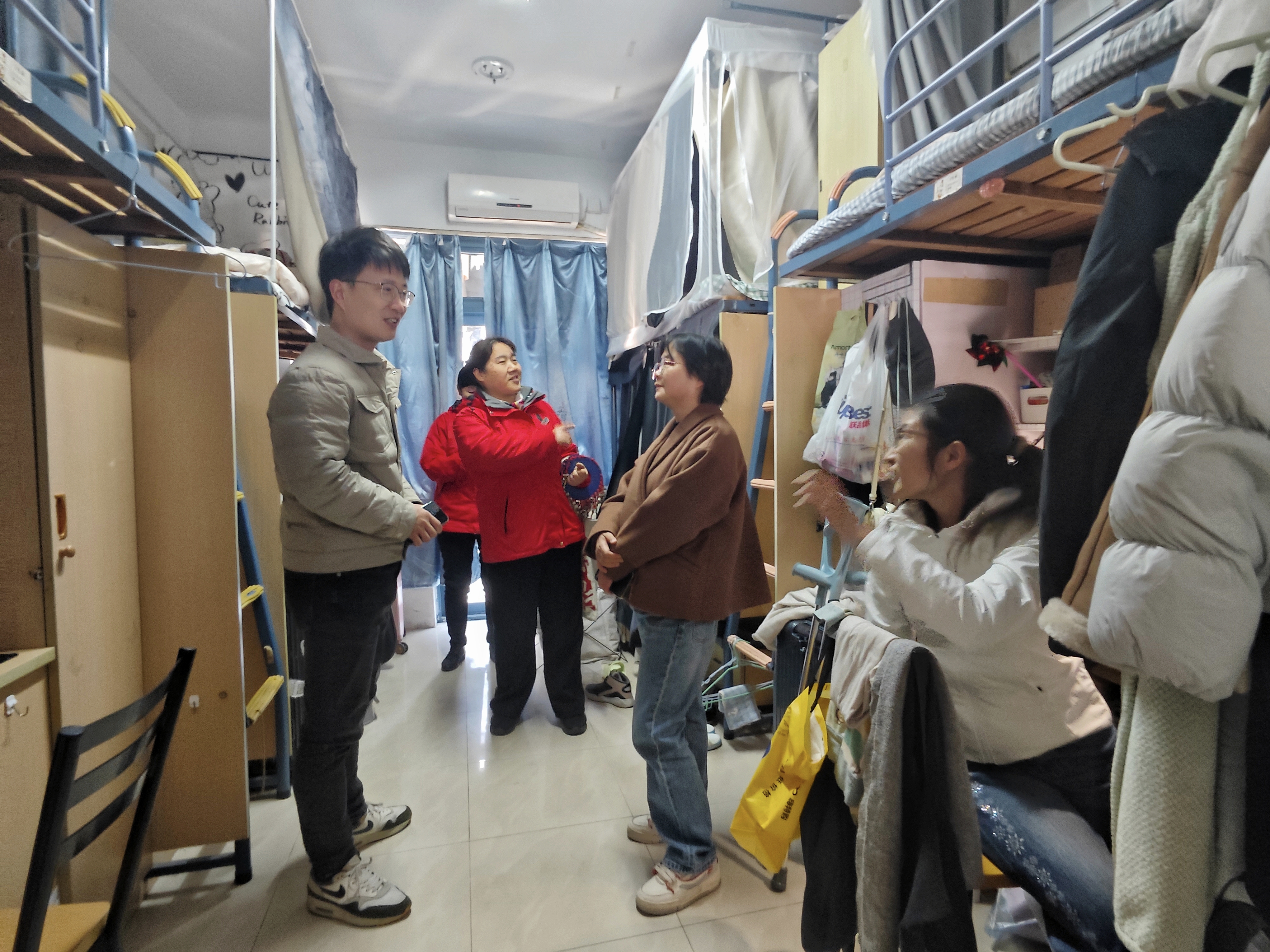 除了安全检查,此次走访更是一次深入的关怀行动。辅导员们与同学们进行了亲切交流,细致询问了大家的学习进展、备考压力、生活适应情况及遇到的困难,认真听取了同学们对宿舍管理、后勤服务等方面的意见和建议。同时,老师们还特别提醒同学们注意防寒保暖,保持规律作息,加强体育锻炼,以健康的身心状态投入到紧张的学习生活中。