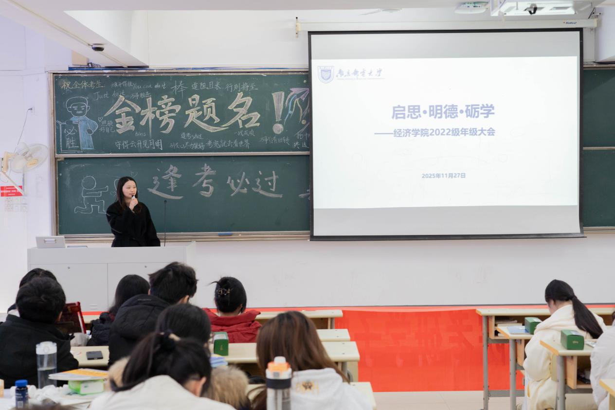 2025年11月27日下午,mg4355vip检测中心2022级于教4-201召开“启思·明德·砺学”年级大会,会议由辅导员储宜旭主讲,围绕理想信念、安全意识和学风建设展开,为处于关键阶段的本科生提供指导与支持。