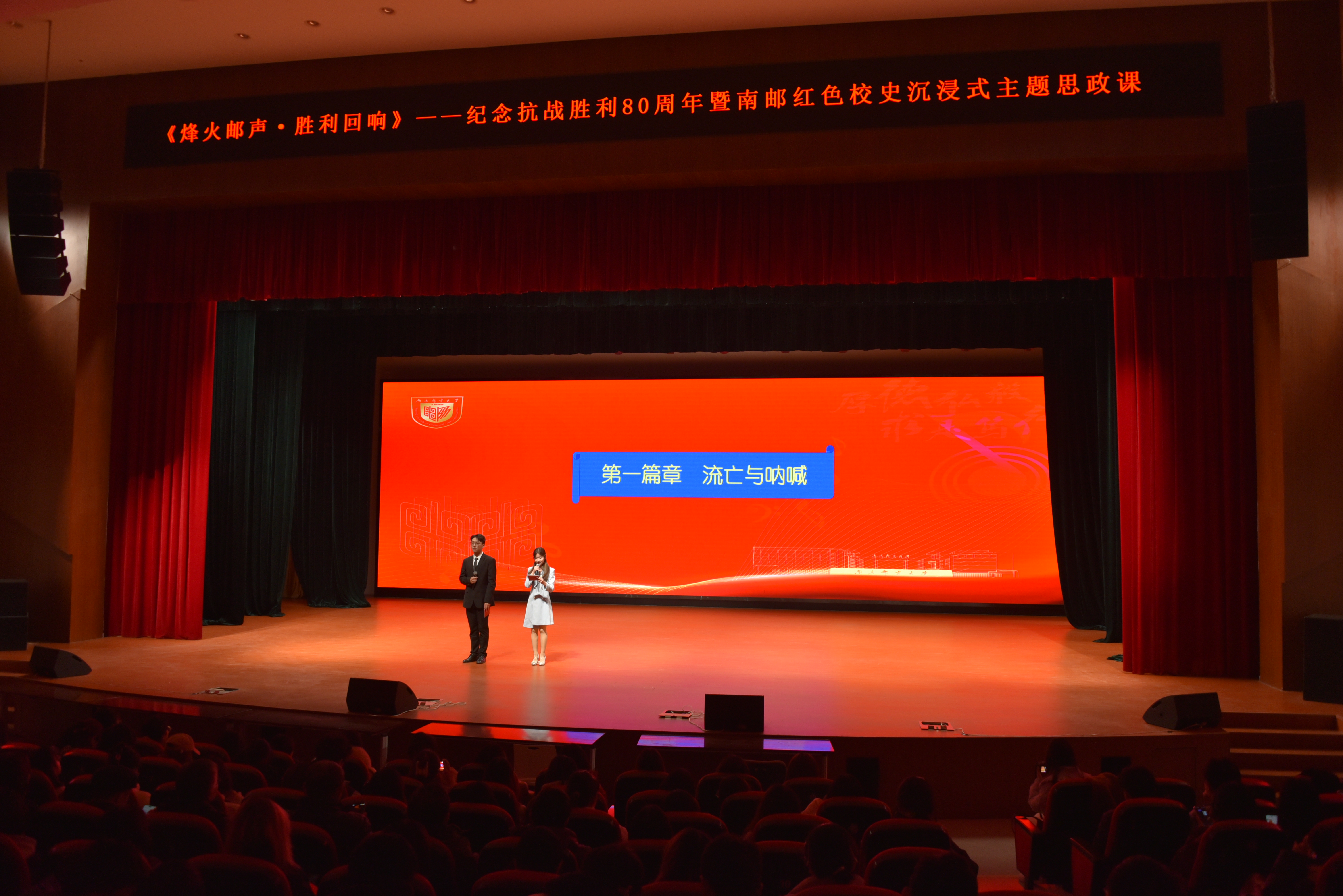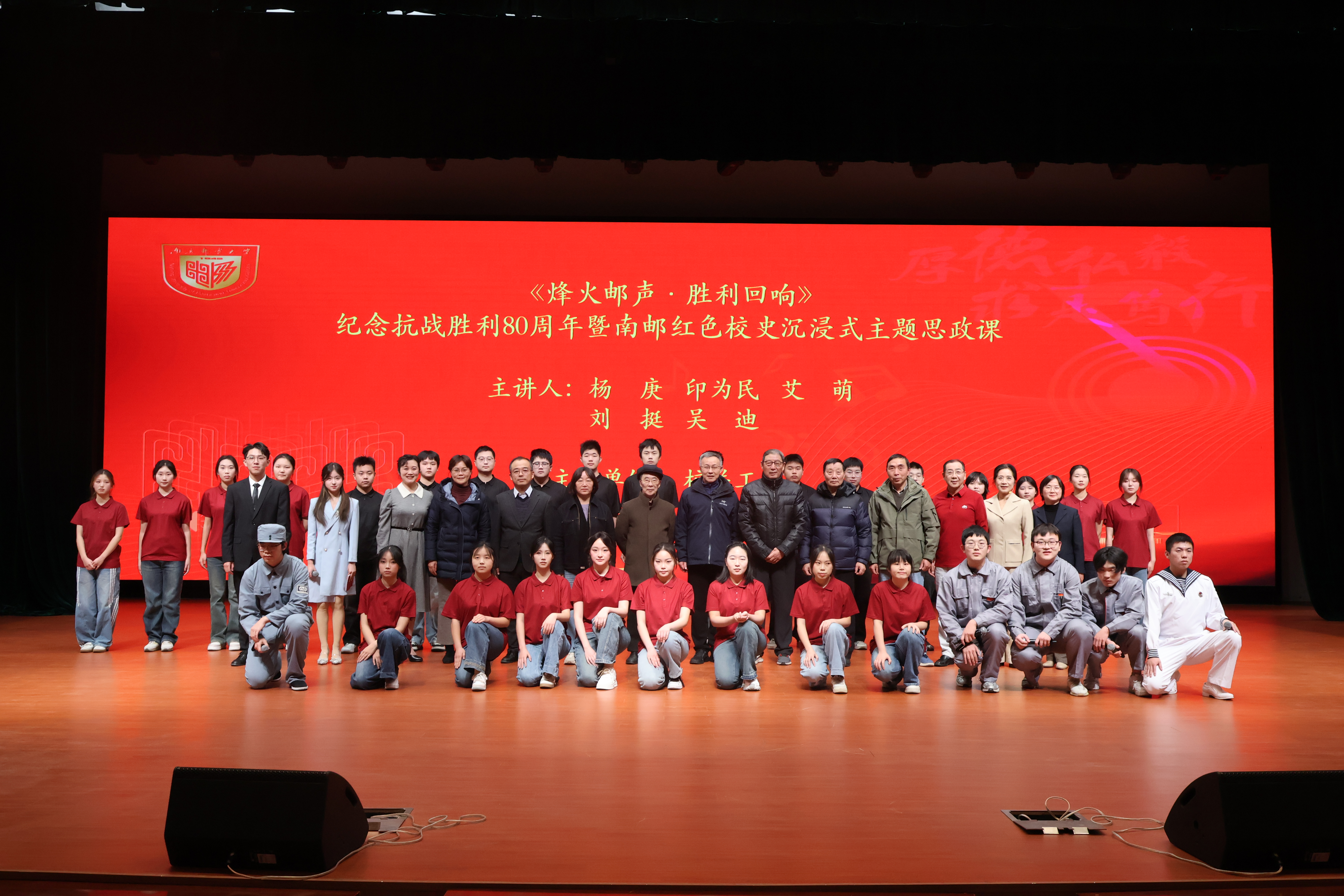 本次思政课以“烽火邮路”为主线,突破传统模式,以时间为轴、以音乐为媒,通过《松花江上》《黄桥烧饼歌》《南泥湾》《沂蒙山小调》等经典抗战歌曲的生动演绎,串联起“流亡与呐喊”“军民鱼水情”“生产与自立”“沂蒙精神”“信仰的力量”五个篇章,艺术化再现了从九一八事变到抗战胜利的峥嵘岁月,并勾勒出南邮自沂蒙山“战邮干训班”诞生以来,一路辗转办学的红色根脉。课程特别设置校史访谈环节,杨庚教授深情讲述了学校始于1942年的红色起源,揭示了“信达天下,自强不息”南邮精神的深厚底蕴。高潮部分的情景组歌《信仰的力量—走进你的世界》,通过塑造秦华礼、管兆修、“马兰三杰”等南邮楷模群像,生动展现了南邮人八十余年赓续不断的红色信仰与报国情怀。