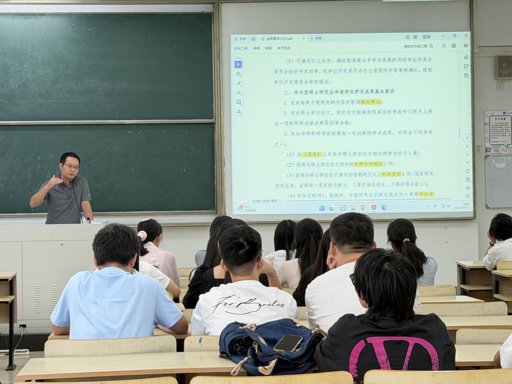 杨院长重点进行了科学道德与学术规范教育。结合研究生管理文件要求,为研究生新生就科研、论文、竞赛、毕业条件等方面进行了针对性介绍,就学术诚信和学术规范进行了重点强调,引导新生立志勤学、端正学风、严谨治学,严守学术道德底线,自觉抵制学术不端学术失范和行为。