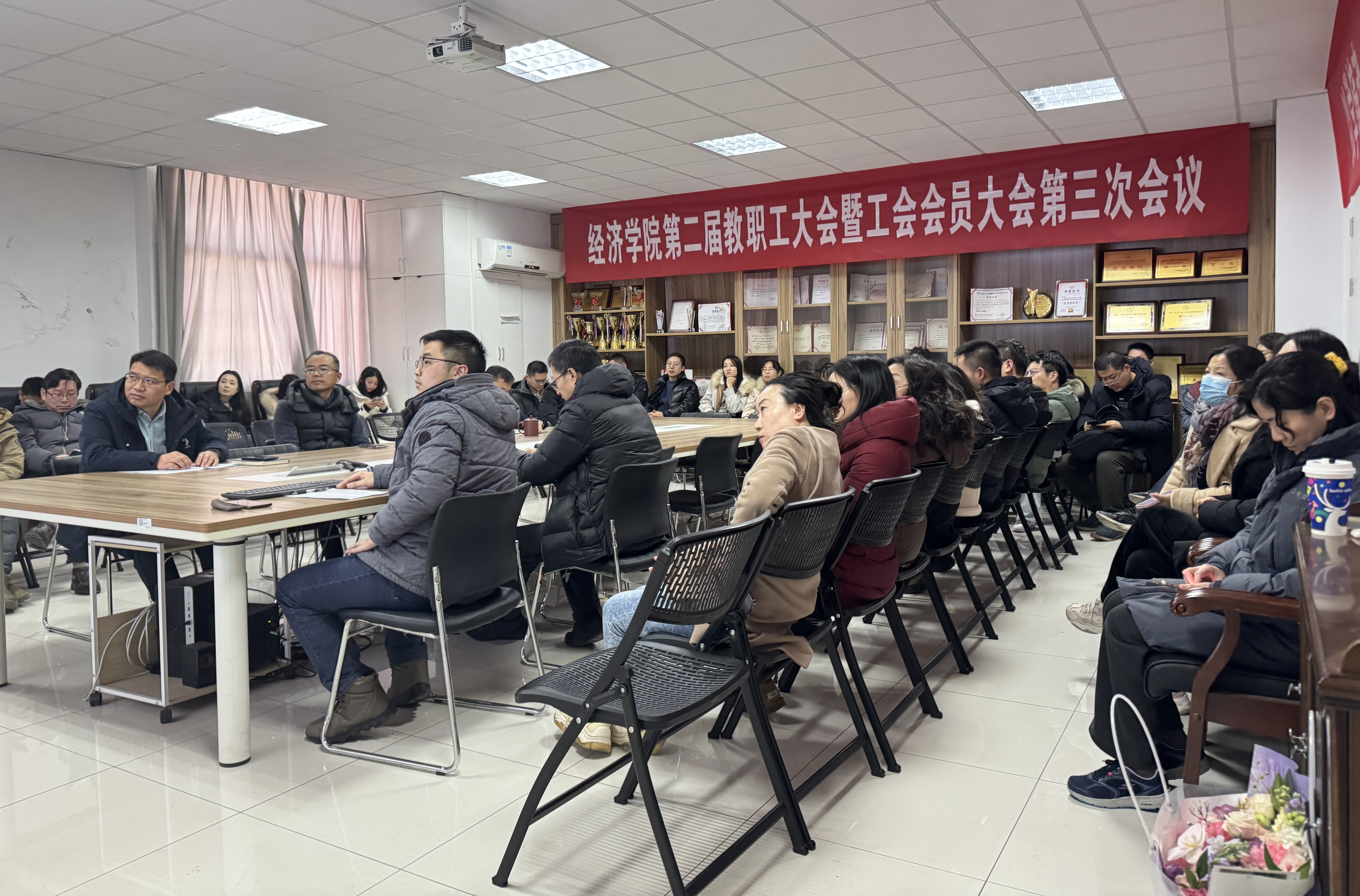 2026年1月22日下午,mg4355vip检测中心于文科楼529会议室召开第二届教职工大会暨工会会员第三次会议。会议由学院党委副书记、分工会主席吴迪主持,全体教职工出席。